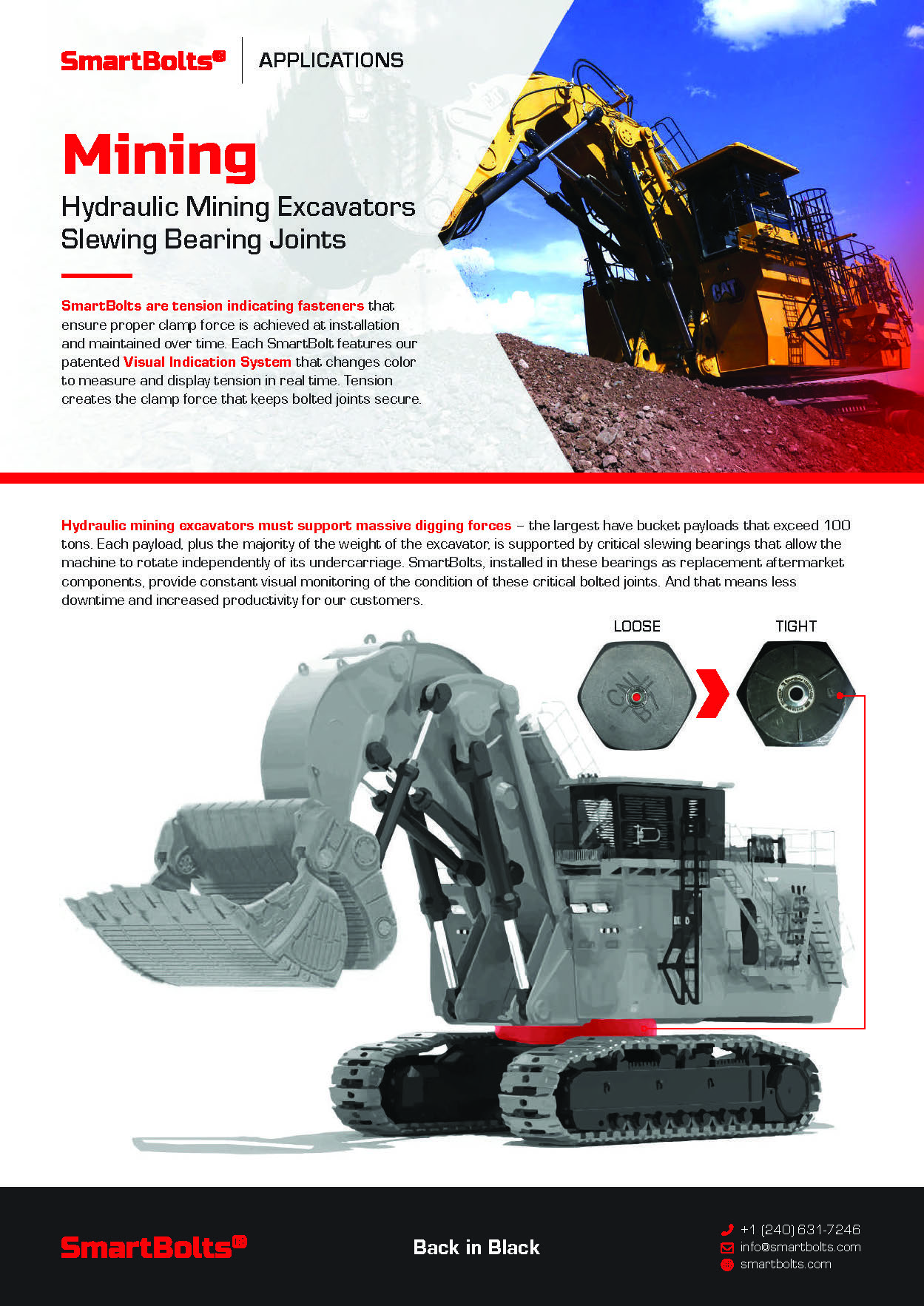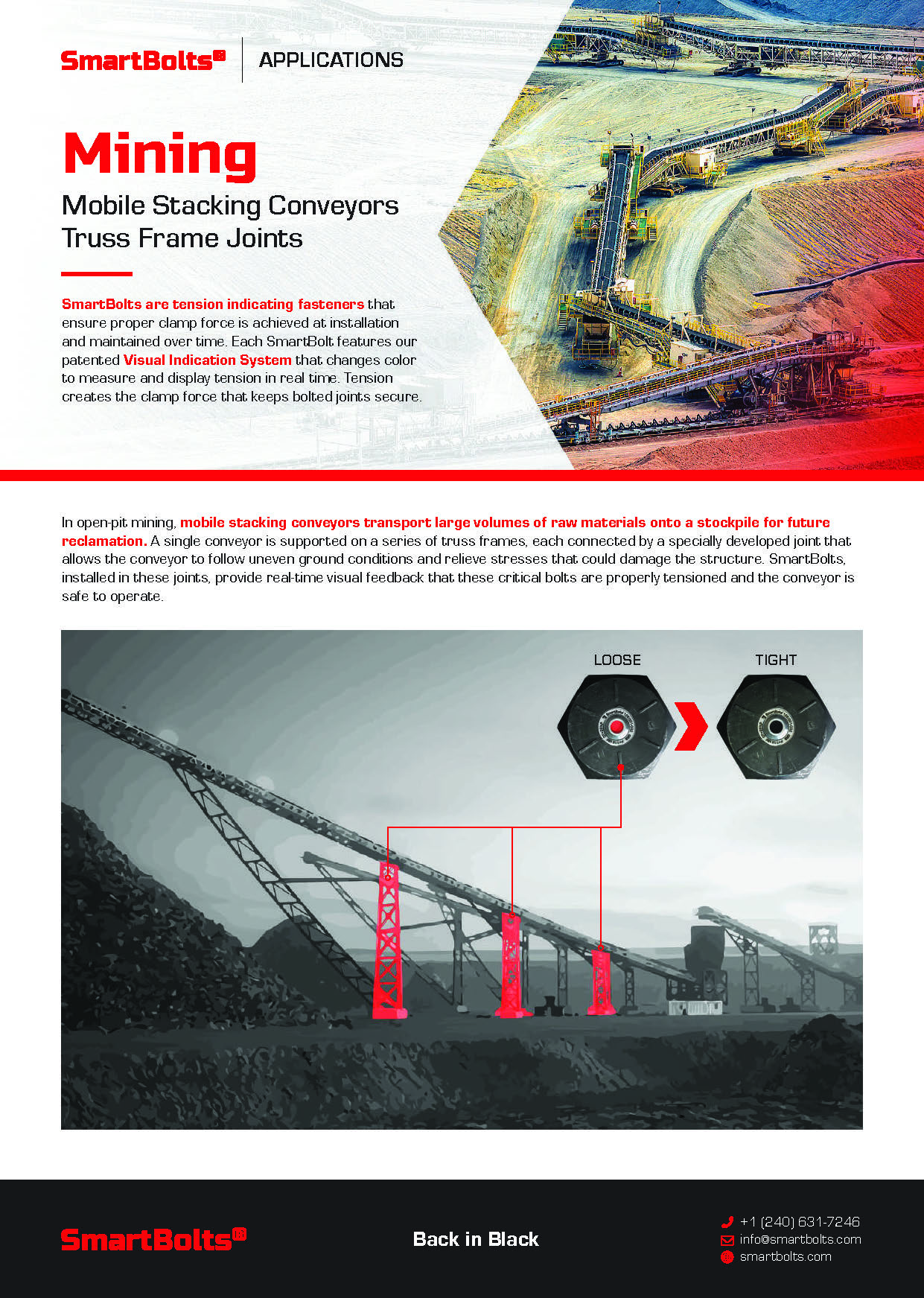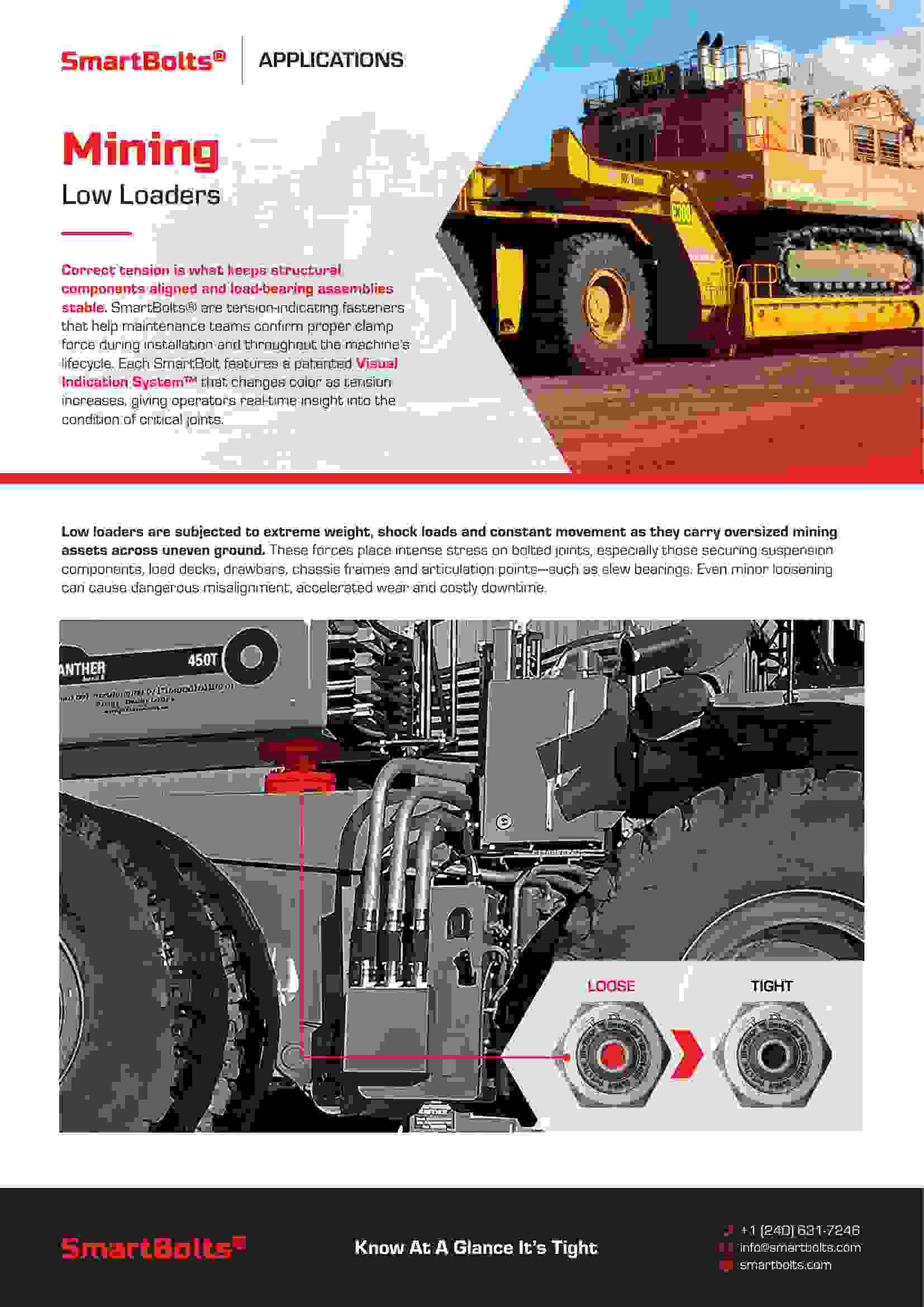 Are you tired of dealing with downtime and safety concerns in your mining operations? Look no further than SmartBolts – the cutting-edge solution designed to transform the way you work in the mining industry.In the demanding landscape of mining, where efficiency is paramount and challenges are abundant, SmartBolts emerge as a game-changer. Our innovative technology ensures that crucial components stay securely fastened, mitigating risks and maximizing uptime.With SmartBolts, you can say goodbye to unnecessary downtime and hello to enhanced safety and productivity. Our unique capabilities support truss frames, slewing bearings, and drive shaft sprocket connections, eliminating costly delays and improving overall operational efficiency.